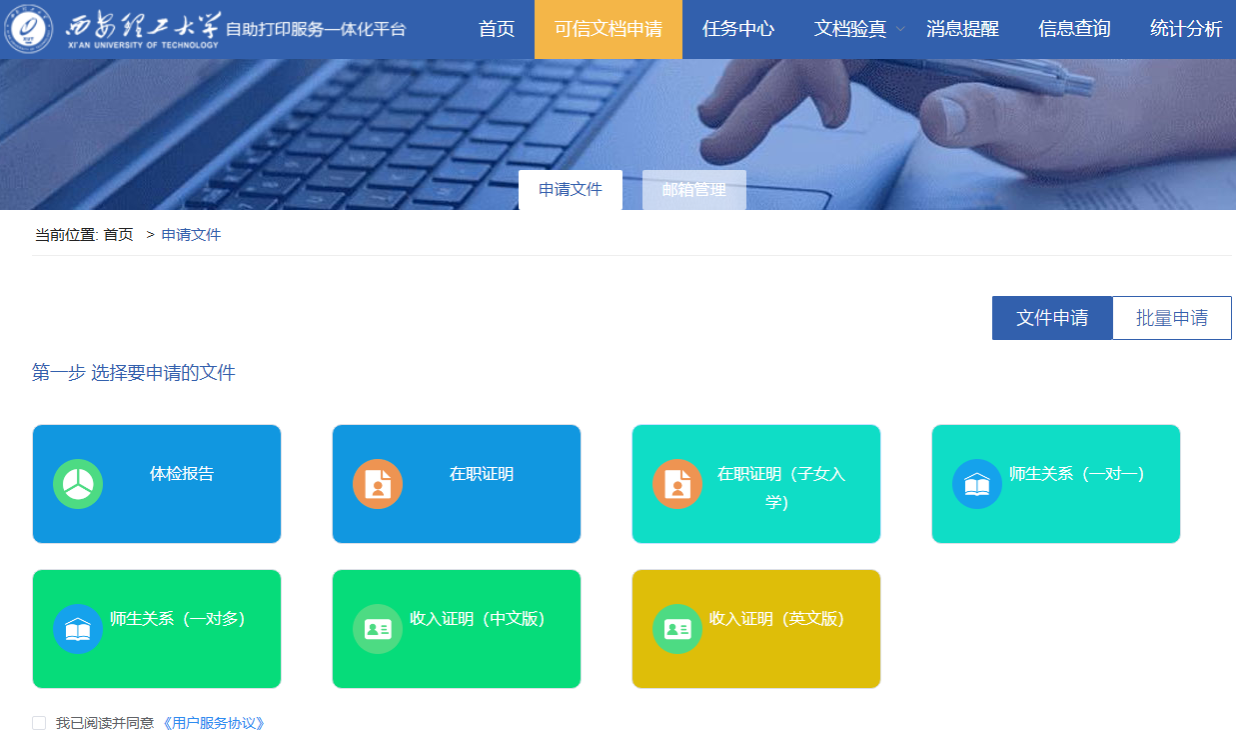 Tips:我们已陆续向教职工提供《在职证明》、《收入证明》(中、英文)、《退休证明》(中、英文)、《师生关系证明》、《体检报告》5类自助服务,后续将不断为师生上线更多可信电子凭证,敬请关注!如有自助打印业务需求的部门,可以登录“融合门户”搜索“可信电子文档自助打印业务需求申请”提交相关需求。