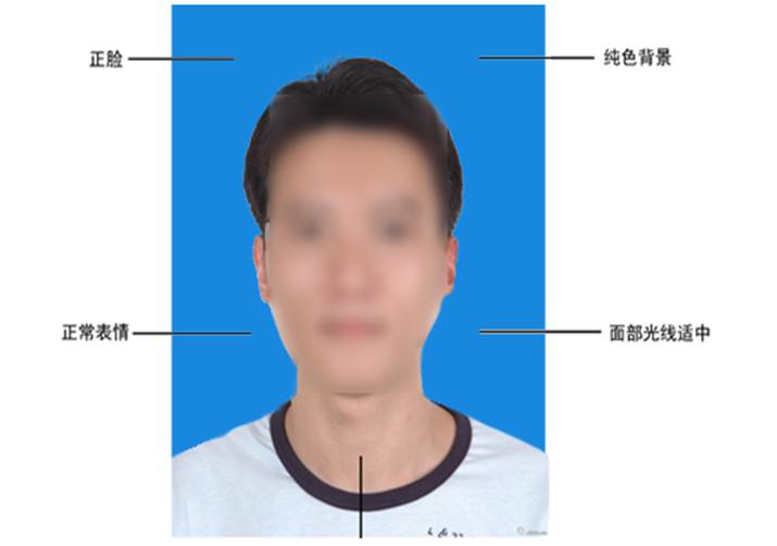 人脸大小占比整张照片的超过三分之一,照片背景单一,保证人脸清晰,照片不能经过PS或美颜,没有强光干预。